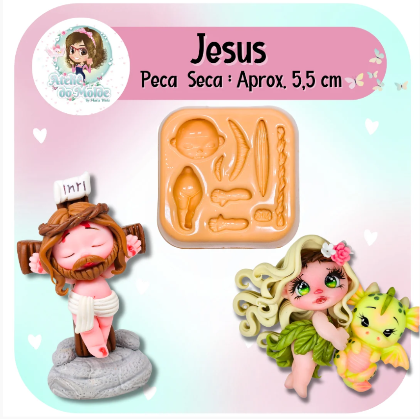 Molde de silicone para uso em artesanato em biscuit, gesso, massas de EVA.